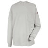 Rib knit crewneck-style collar , Rib knit cuffs, Tagless brand label and warning label, This flame-resistant garment meets the requirements of NFPA 2112, Standard on Flame-Resistant Garments for Protection of Industrial Personnel Against Flash Fire, 2012