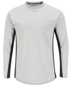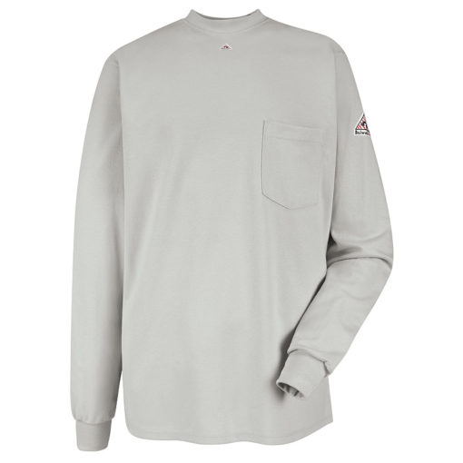 Rib knit crewneck-style collar , Rib knit cuffs, Tagless brand label and warning label, This flame-resistant garment meets the requirements of NFPA 2112, Standard on Flame-Resistant Garments for Protection of Industrial Personnel Against Flash Fire, 2012