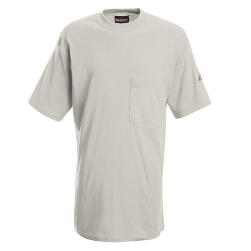 Rib knit crewneck-style collar, Hemmed sleeve ends, Tagless brand label and warning label